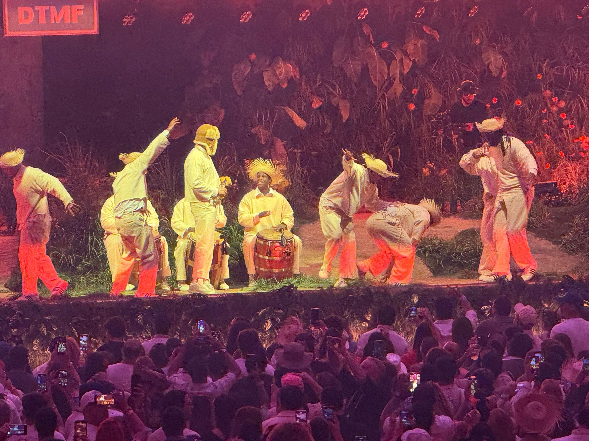 En una tarima que emula las montañas de la isla, el “Conejo Malo” subió al escenario acompañado por un grupo de bailarines vestidos como jíbaros puertorriqueños.