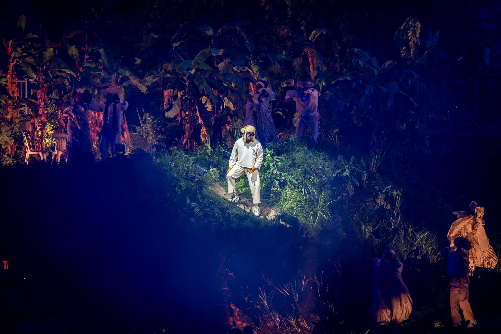 La función del domingo tuvo como invitados a los artistas puertorriqueños René Pérez, mejor conocido como “Residente” y Kany García. El rapero fue el encargado de montar el ‘party de marquesina’ en la casa de campo instalada en el recinto al son del legendario tema “Chulin Culin Cunflai”. En esta ocasión fue Bad Bunny quien realizó los “chanteos” de Julio Voltio, rapero que realizó el tema original.
