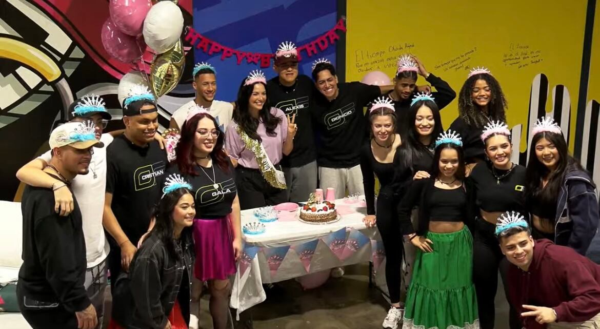 A su llegada a la casa-estudio, los noveles artistas recibieron a Denise con coronas, bizcochos y decoración para celebrar los 45 años de la cuarta reina universal boricua.