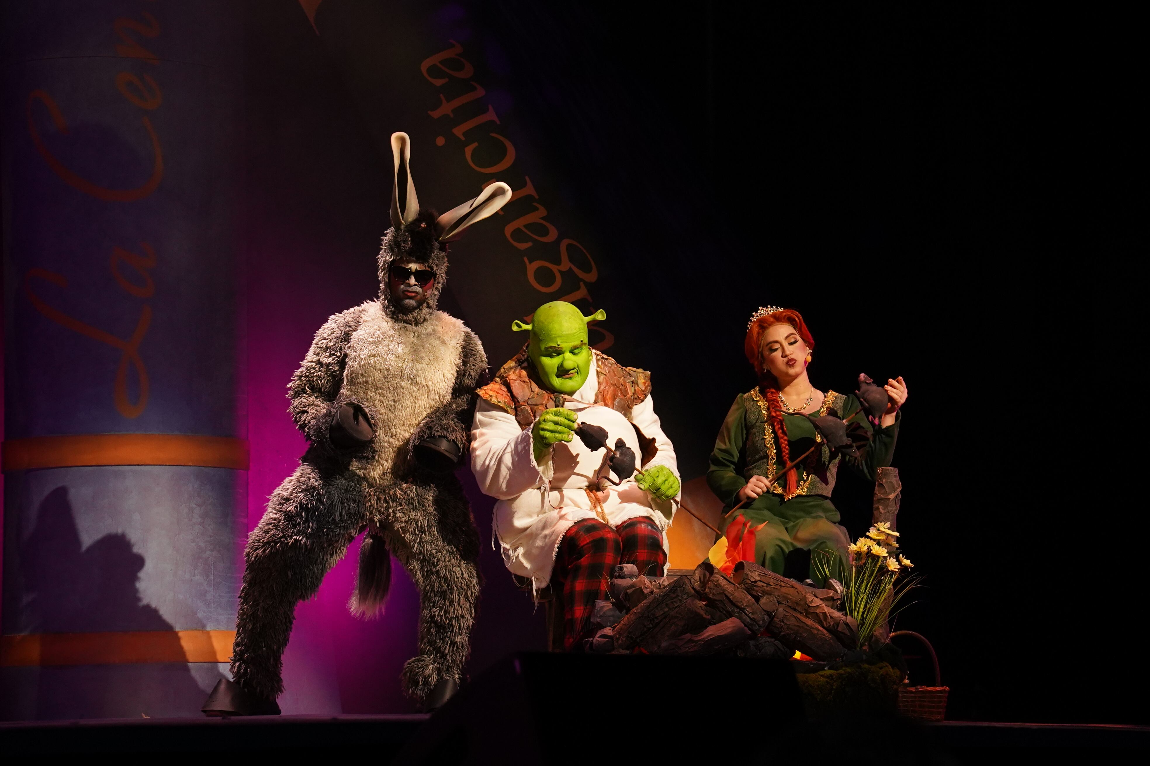 El talentoso elenco, encabezado por Juan Pablo Díaz en el papel de Shrek, Yeidimar Ramos como Fiona y Jasond Calderón como el inolvidable Burro, conquistó al público con su carisma y energía. Completaron el cuadro actoral figuras como Julián Gilormini (Lord Farquaad), Wanda Sais (Gingy), Luis Obed (Pinocho) y Marileyda (la Dragona), además de contar con sobre de 25 personajes de cuentos en escena y una impresionante orquesta de 16 músicos.