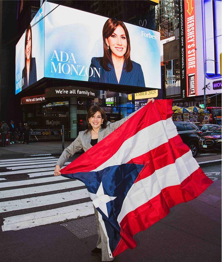 La meteoróloga Ada Monzón es una de las mujeres líderes profesionales elegidas para exaltar su imagen en la icónica pantalla digital de Times Square en la ciudad de Nueva York como parte de la prestigiosa lista de Forbes “50 Over 50” de 2025.