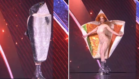 La candidata salió al escenario con un traje inusual, uno en forma de salmón