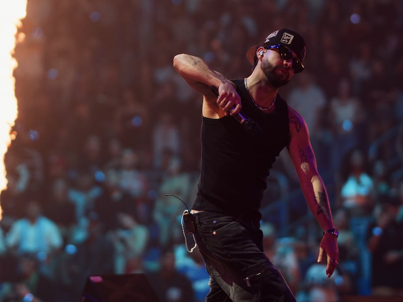 Mora sobre el escenario del Coliseo de Puerto Rico, despidiendo su gira mundial “Lo mismo de la otra vez tour”.