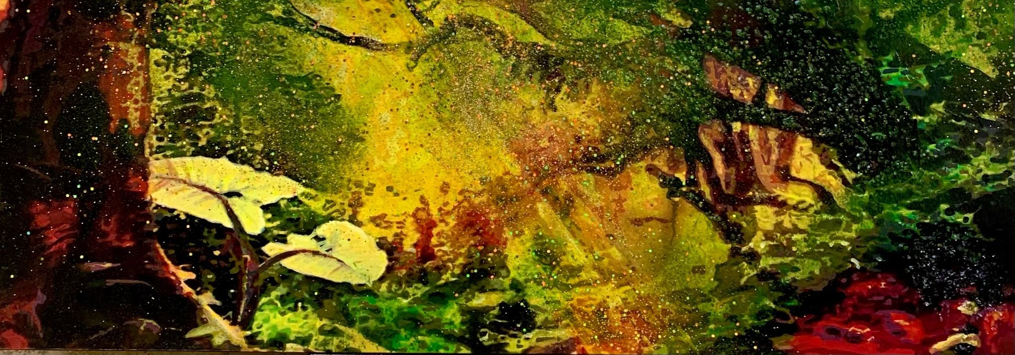“La muestra, en pequeño, mediano y gran formato, fue realizada con el medio del acrílico y cristales molidos sobre tela. El título de la exhibición es una metáfora filosófica en la cual, a través del paisaje tropical, el artista plantea cualidades humanas, espirituales, sublimes, amorosas y tenebrosas, entre otras”, explicó Vázquez.