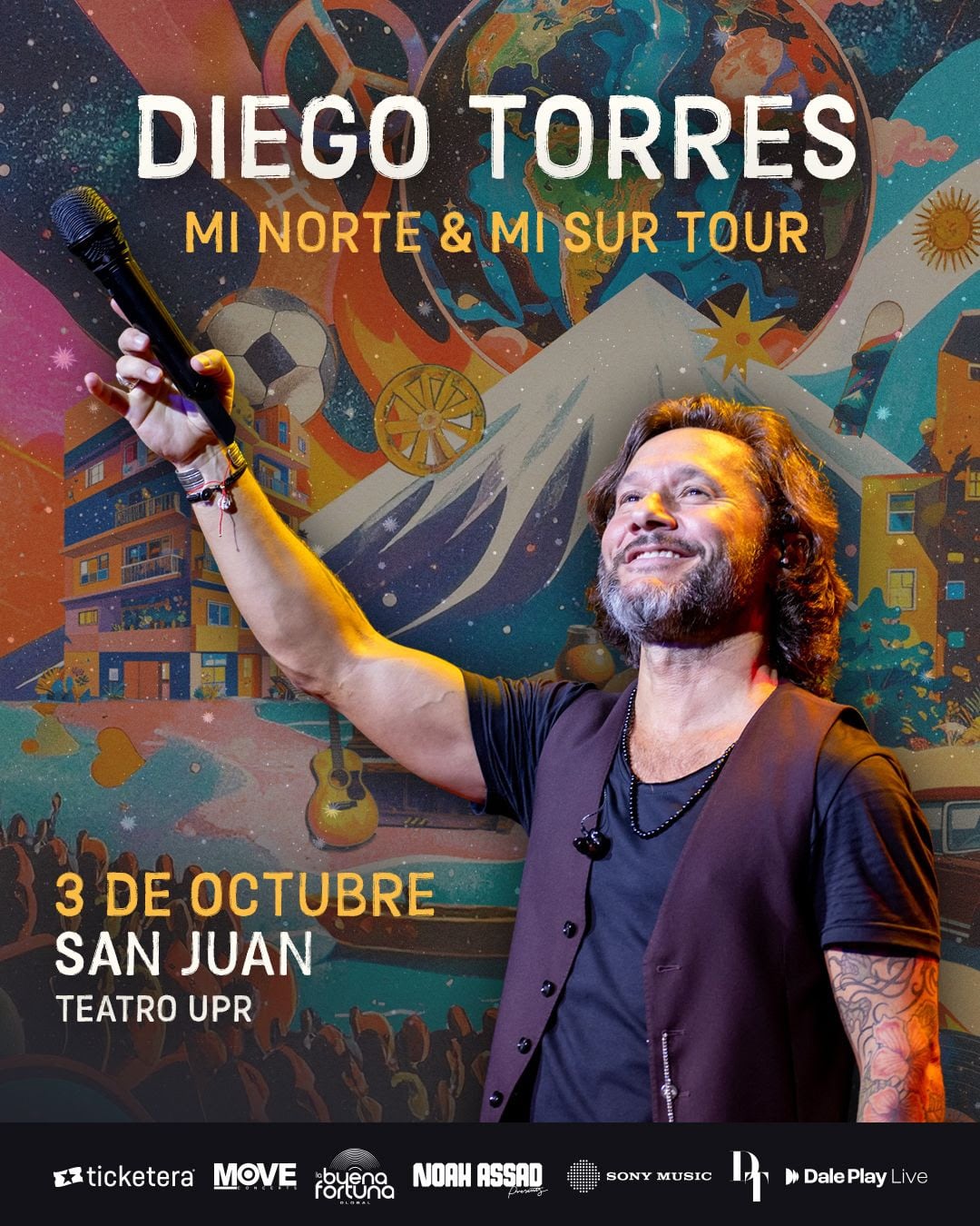 El cantante argentino Diego Torres se presentará en la isla, el 3 de octubre de 2026, en el Teatro de la Universidad de Puerto Rico, donde interpretará temas que han marcado a varias generaciones, como Color Esperanza, Mejor que Ayer, Sueños, Sé que ya no volverás, Penélope y Que no me pierda, entre otros.