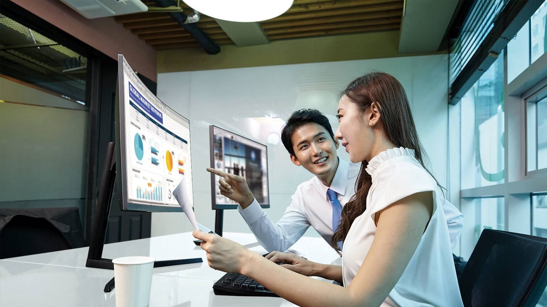 Los últimos monitores profesionales de Samsung están diseñados para representar los documentos y las imágenes con presentación de nitidez y color óptimos, ampliando los detalles visuales menores o sino ocultos. La resolución ultra WQHD de CH89 (3.440 x 1.440) produce una presentación nítida con casi 2.5 veces la densidad de pixel de FHD, creando un espacio de trabajo más amplio y más colorido. El SH85 imita la resolución WQHD (2.560 x 1.440) que entrega imágenes detalladas con casi 1.8 veces más densidad de pixel que los monitores estándares FHD.