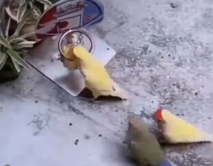 Dos cestas y una pelota con agujeros son los implementos perfectos para que cada uno de ellos con su pico pueda hacer una notable anotación y es que es así, todos caminan detrás de las esférica y se van turnando para encestar.