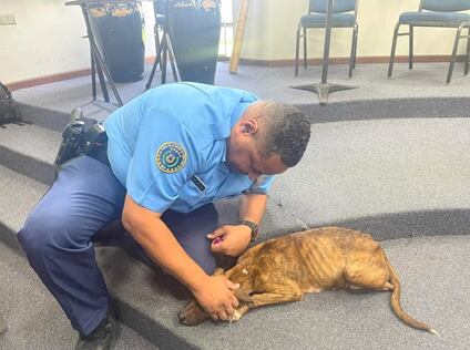 Una perrita, rescatada por los miembros de la Banda de la Policía de Puerto Rico en estado precario de salud, encontró un hogar de la mano de uno de los agentes que integran este grupo policiaco.