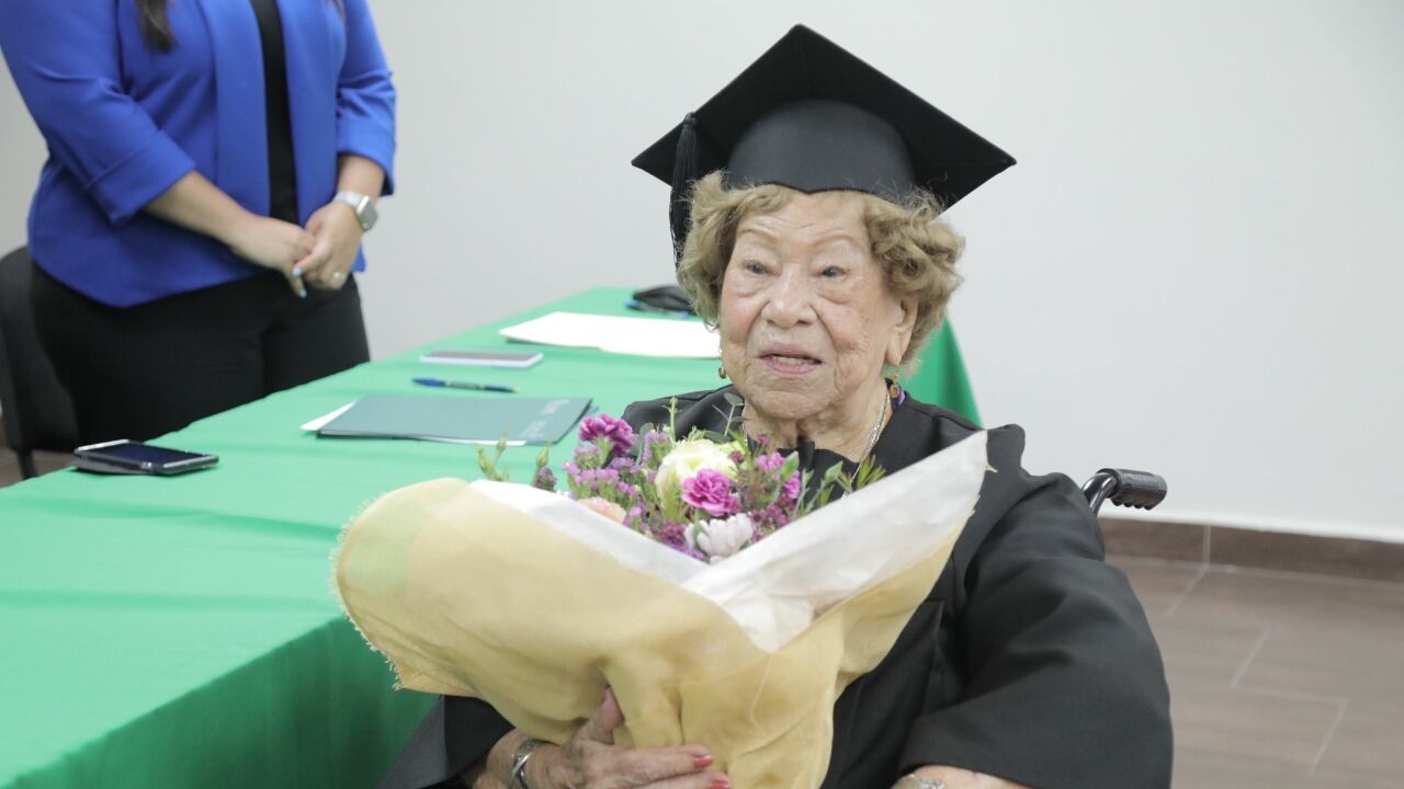 .“Estamos hoy aquí para entregarle este documento que solo usted sabe qué tanto le costó obtenerlo, el esfuerzo que implicó. Para nosotros es un ejemplo y un estímulo, gracias de verdad por hacer el esfuerzo y hacer posible esto, y que podamos darlo a conocer, para esto no hay edad”, pronunció el Rector Santos Guzmán López.