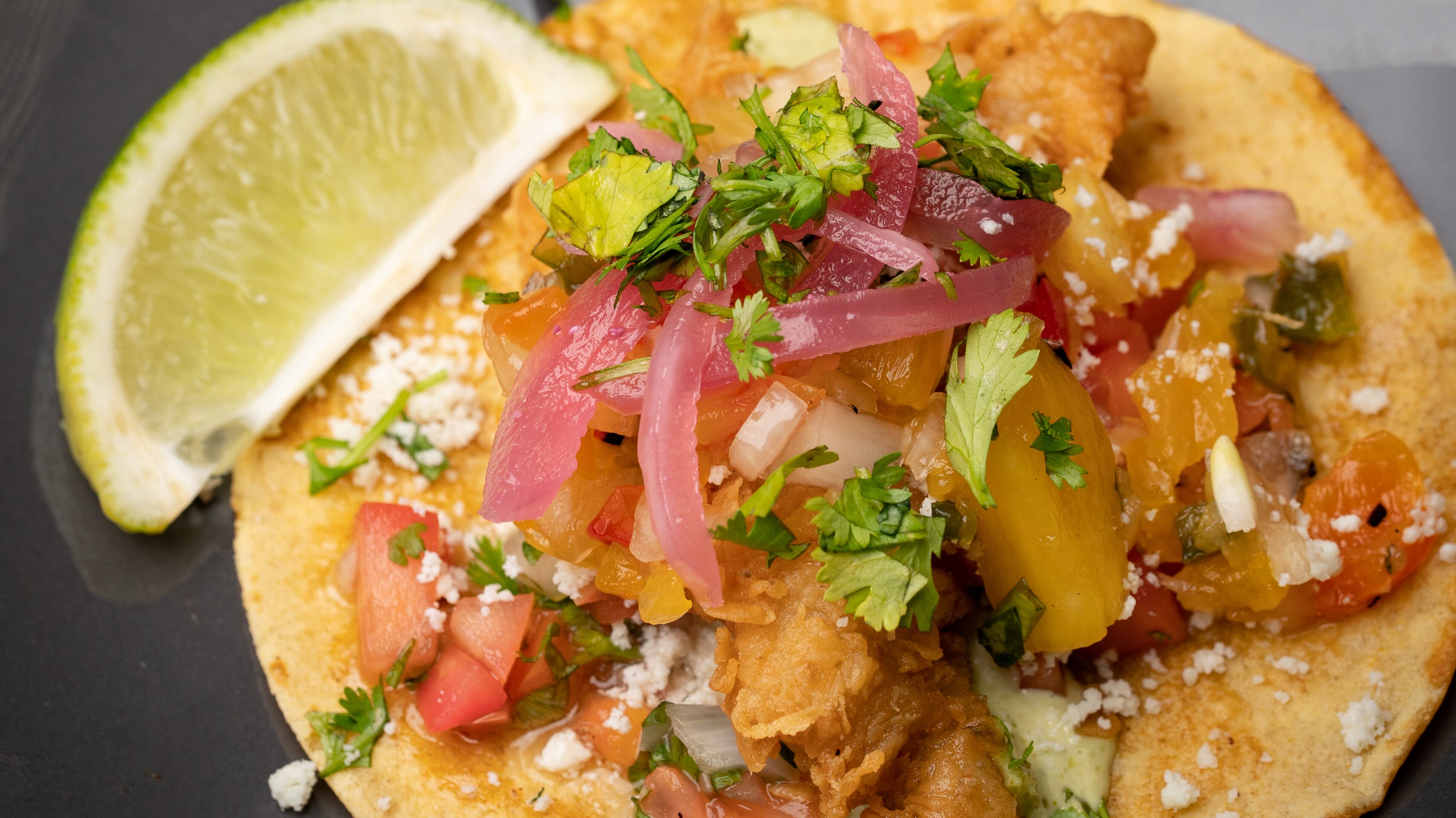 De los tacos, la mejor selección son los tacos al Pastor, hechos con carne de cerdo marinada en chiles y salteada con piña; los de Birria, que se elaboran con carne de res hervida con chiles, jengibre, canela y especias, servido en doble plantilla con un consomé para dipear; los de Pescado, mero empanado en tempura de cerveza, con pico de gallo, queso fresco, mayonesa de cilantro y jalapeños, “relish” de jalapeño y piña, y cebollas encurtidas; los de Tinga de pollo con mole de guayaba y chocolate, y cebollas encurtidas; y los de Carne Asada que se elaboran con carne res asada, salsa verde, cebolla y queso fresco.