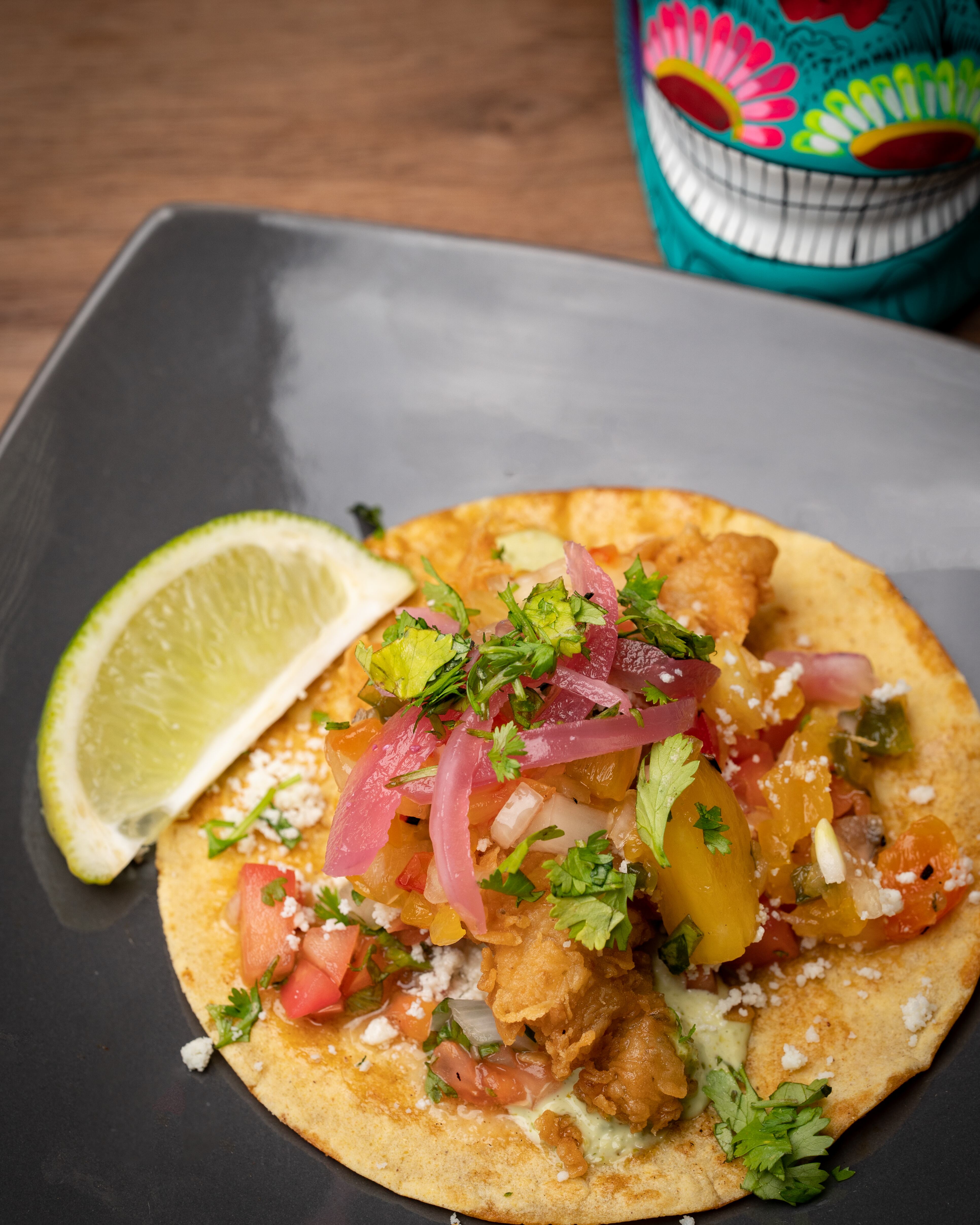 De alegrías a tacos no es un típico restaurante mexicano, es un concepto muy bien pensado por Leisha Guzmán, un lugar que invita a “bajarle al pinche drama” y adentrarse a disfrutar con “los carnales” de los sabores de la cocina tradicional mexicana adaptados al paladar boricua, ofrecimientos creados en colaboración con el chef consultor Luis Ramírez. Todo esto en perfecta armonía con los cócteles, para tomarlos “a besos” como se bebe el mezcal, contrario al shot de tequila que se toma de cantazo.