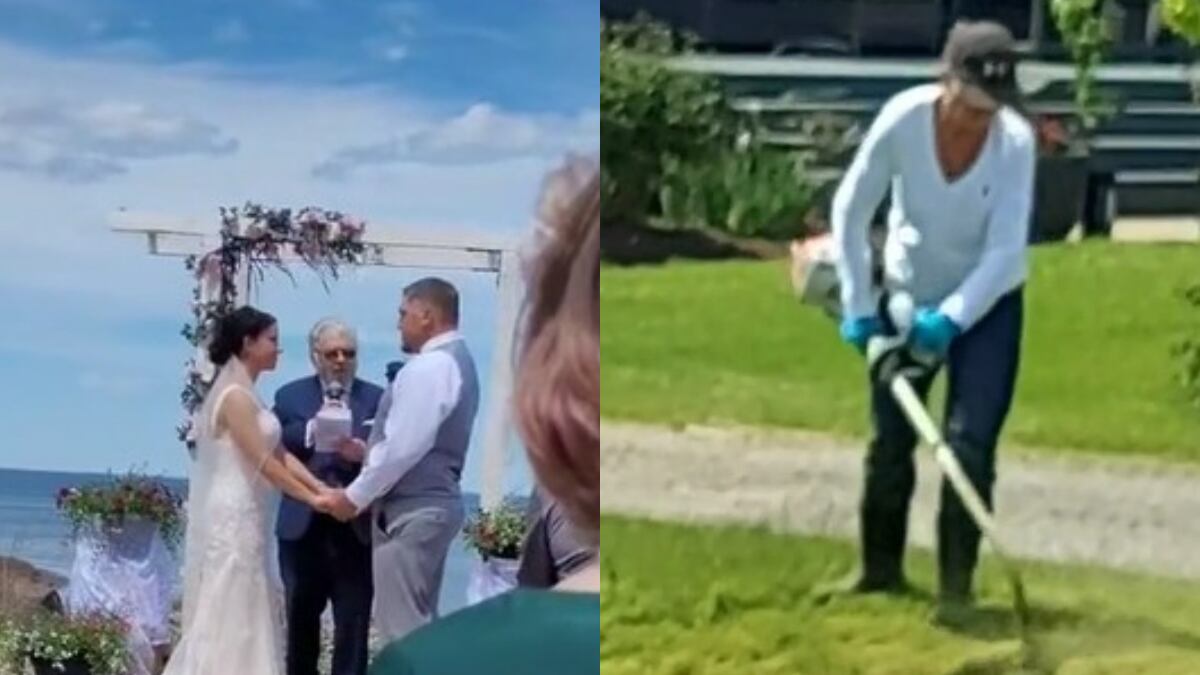 Justo en momentos que una novia caminaba al altar, una mujer decidió salir a cortar el césped y meter ruido con una cortadora de pasto.