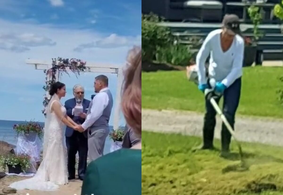 Justo en momentos que una novia caminaba al altar, una mujer decidió salir a cortar el césped y meter ruido con una cortadora de pasto.