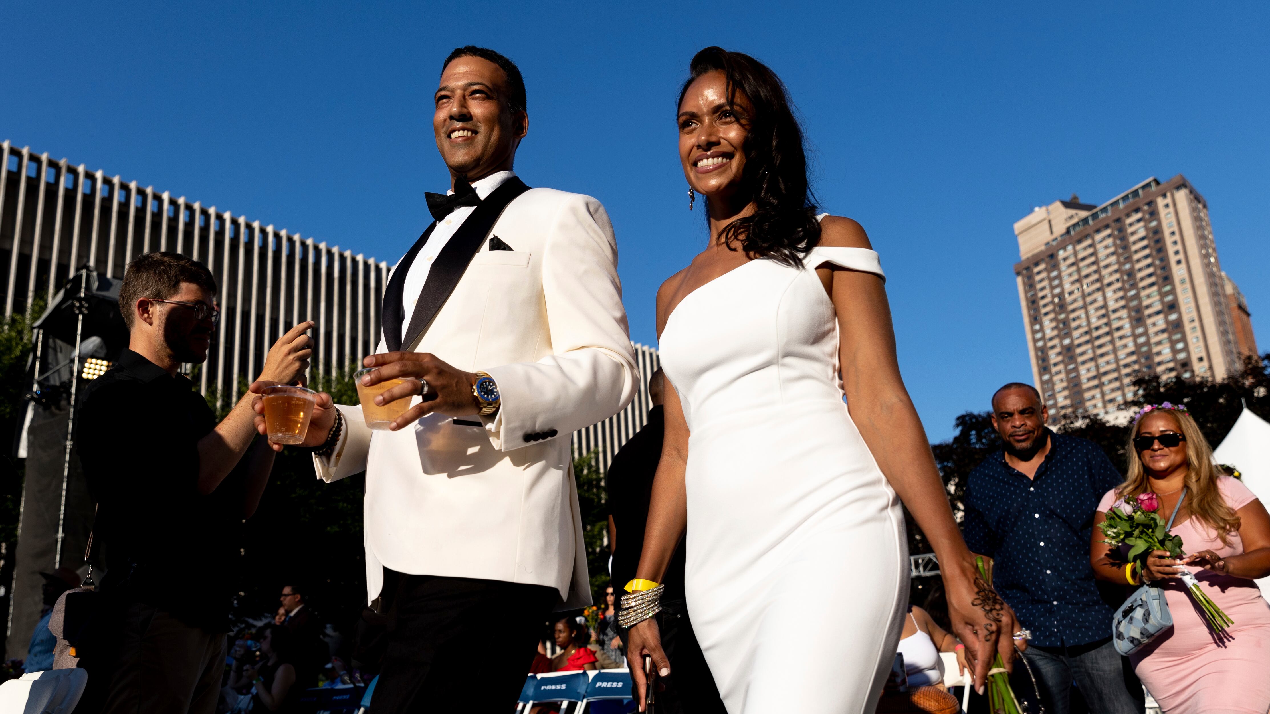 Unas 500 parejas se congregaron frente al complejo teatral de Manhattan Lincoln Center el domingo en la tarde.