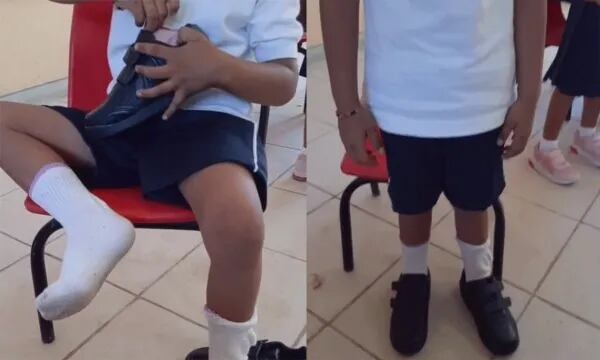 Quedó comprobado en las imágenes que los zapatos que traía estaban muy gastados, motivo por el que la educadora no dudó en obsequiarle unos nuevos.