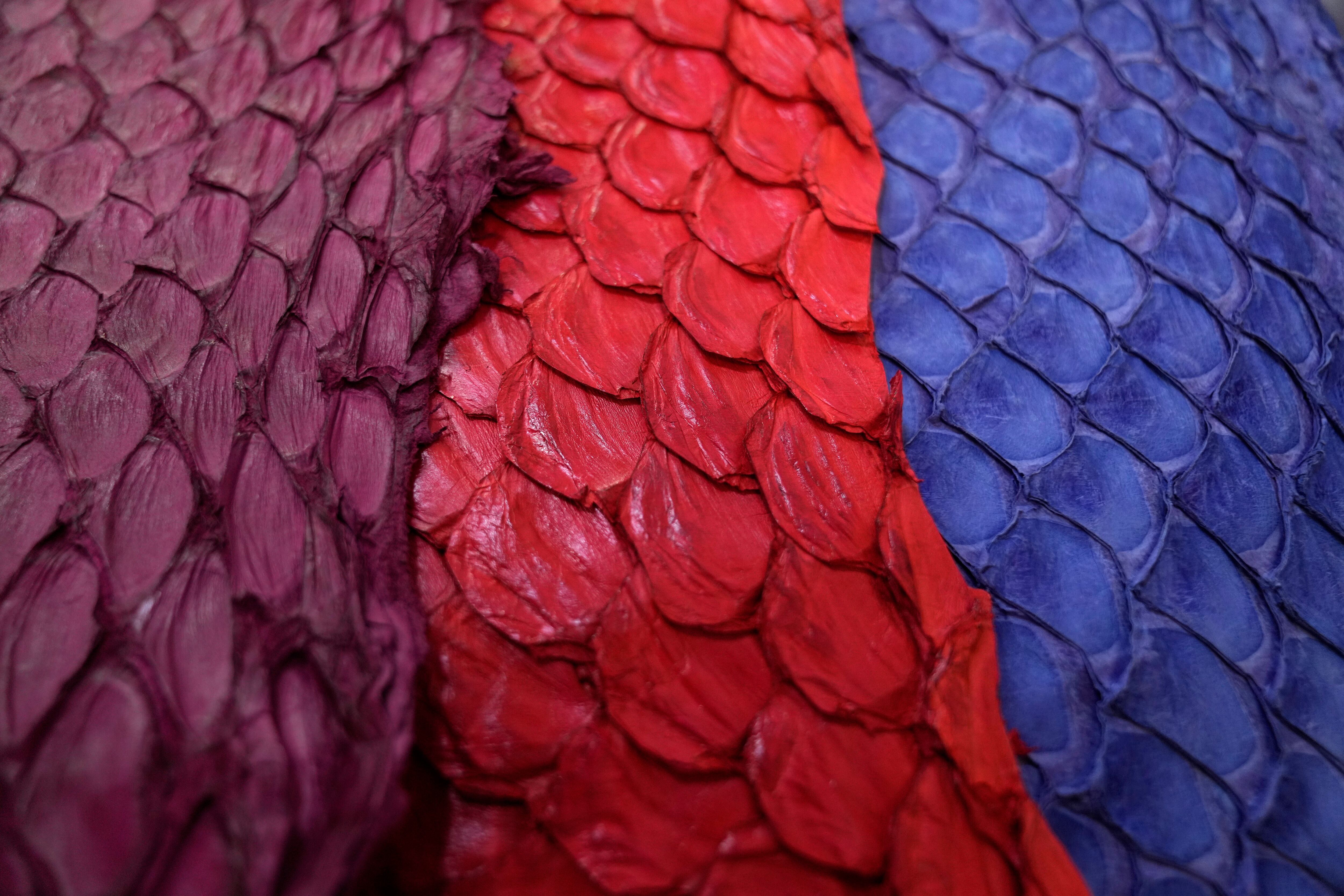 La piel proviene de los peces pirarucú, un alimento básico en la Amazonía que está ganando nuevos mercados en las ciudades más grandes de Brasil.