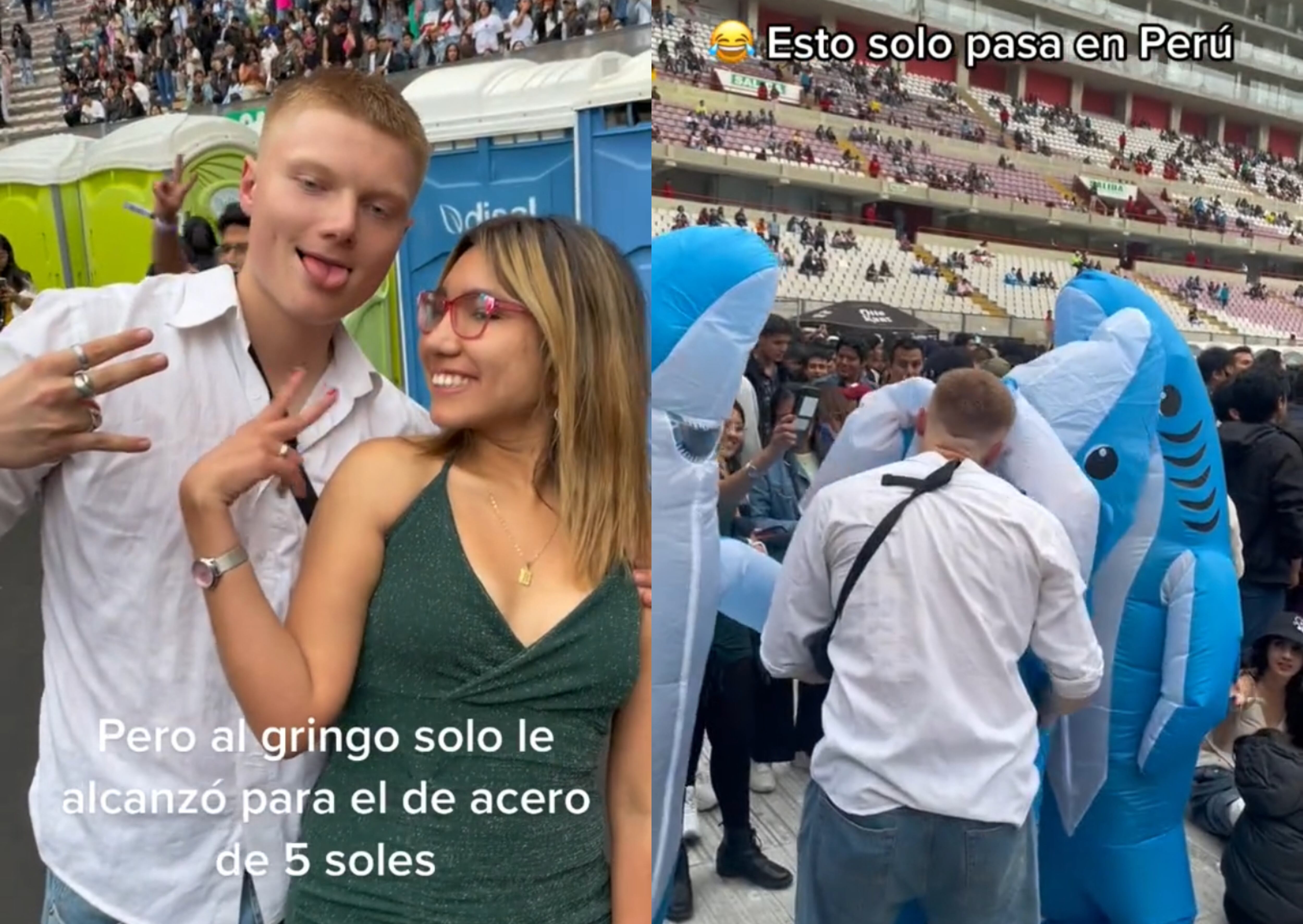 Pero todo se contrastaría con un segundo video, que muestra al joven bailando junto a una mujer vestida de tiburón, terminando el perreo con un beso.