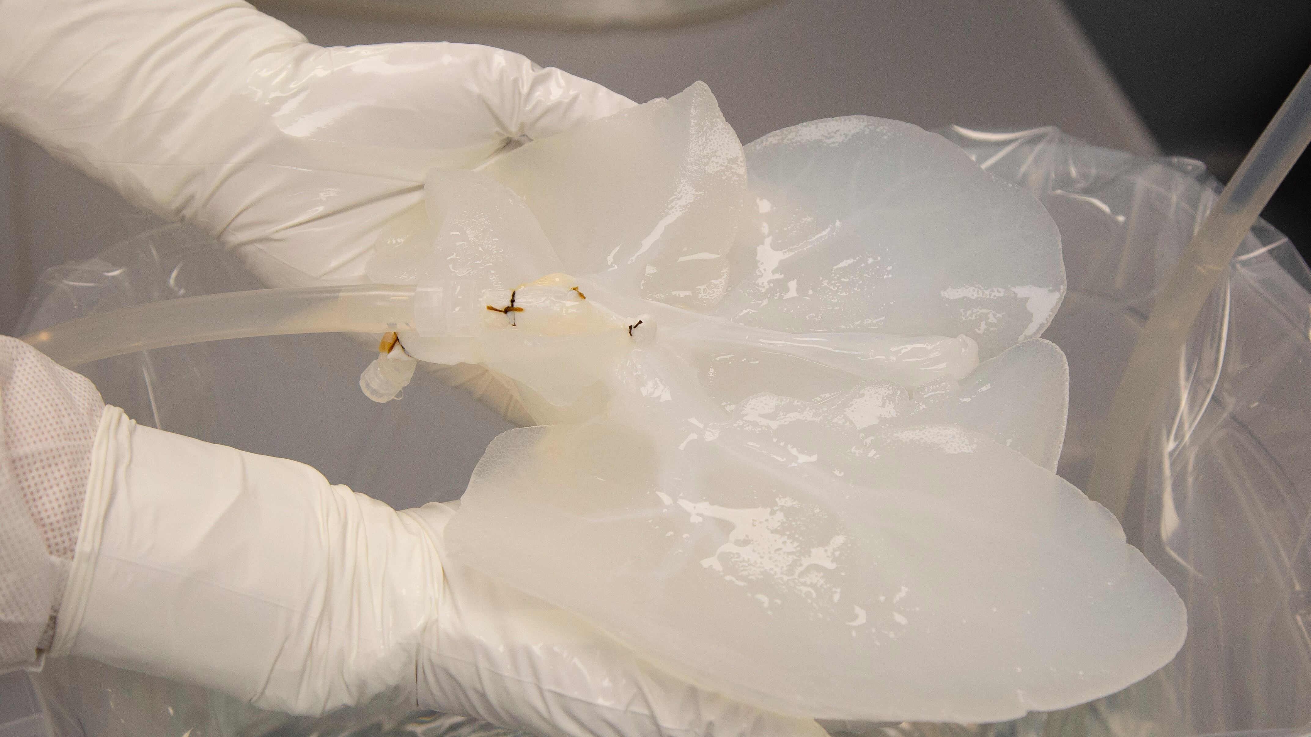 De vuelta en la época actual, ahora en Miromatrix —surgida a partir de los avances de la Universidad de Minnesota— hay filas de grandes jarros que bombean fluidos y nutrientes a hígados y riñones en varias etapas de su metamorfosis.