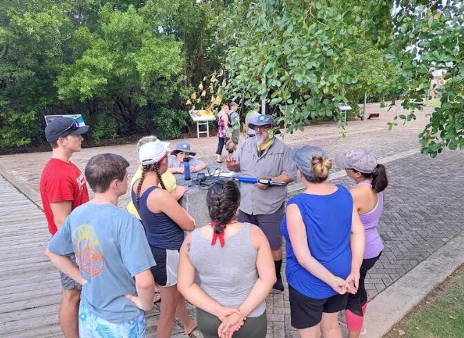 Mario García Quesada, coordinador de participación ciudadana del Estuario de la Bahía de San Juan, tuvo a cargo la presentación sobre los mangles, además de la calidad del agua. Los participantes tuvieron la oportunidad de trabajar un proyecto de siembra y toma de muestras de agua. sobre los mangles y vegetación costanera presente.