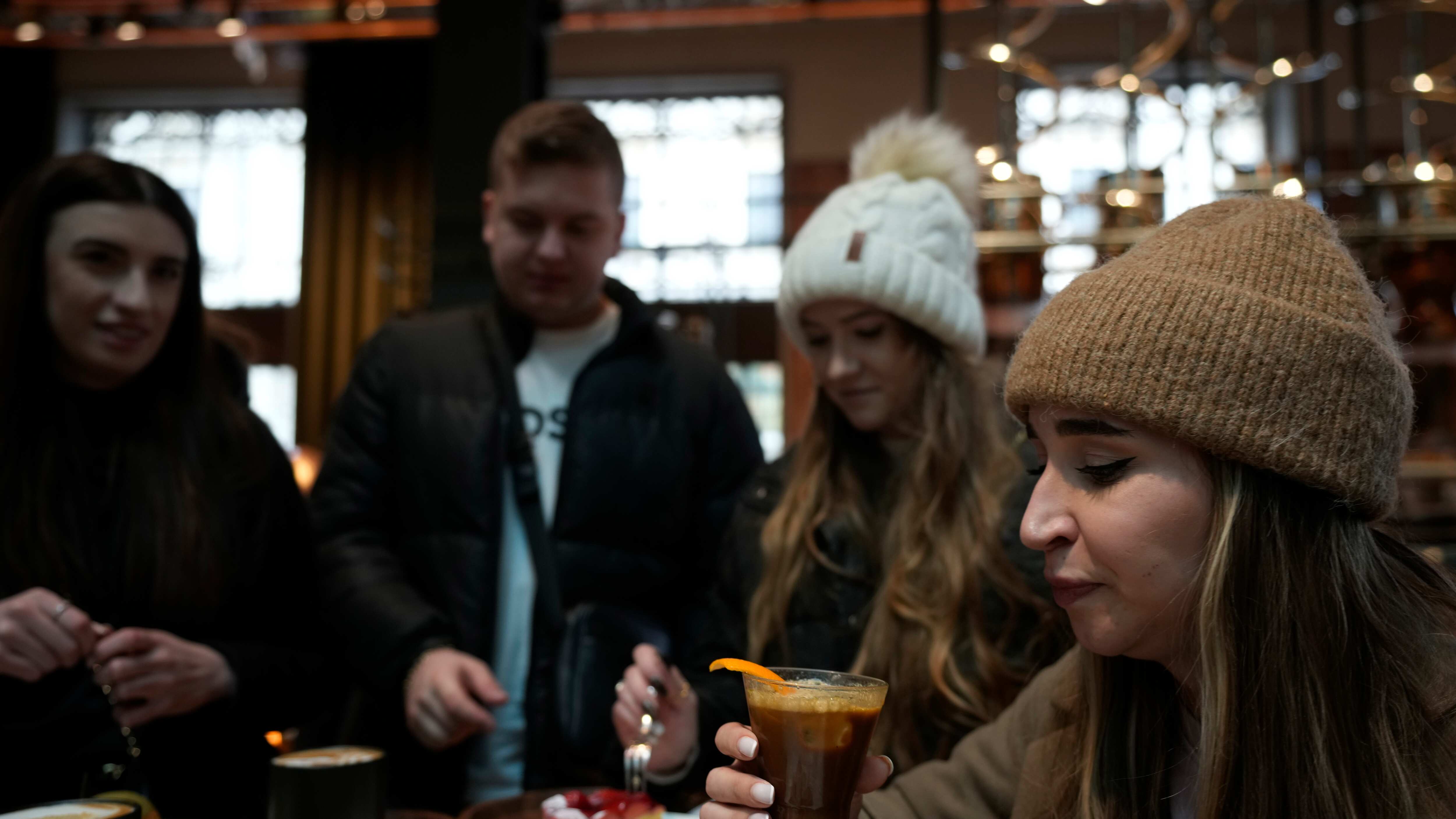 “Sabe como un café normal, pero con naranja. No es fuerte”, señala la joven de 26 años procedente de Varsovia, Polonia, quien estaba de visita con un grupo de amigos. También ordenaron el “Golden Foam Cold Brew” junto con un par de capuchinos ordinarios.