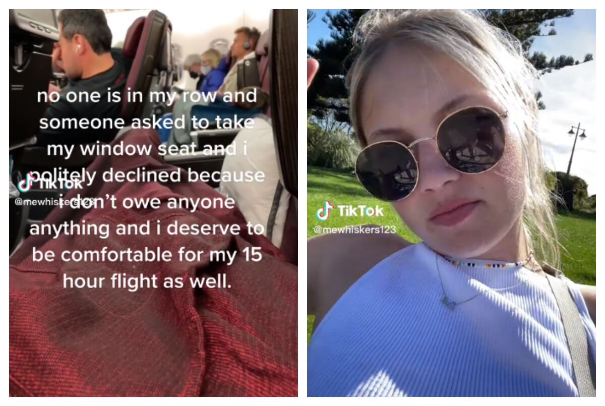 Tiktoker generó polémica al no ceder asiento de la ventana a otro pasajero en un vuelo de 15 horas