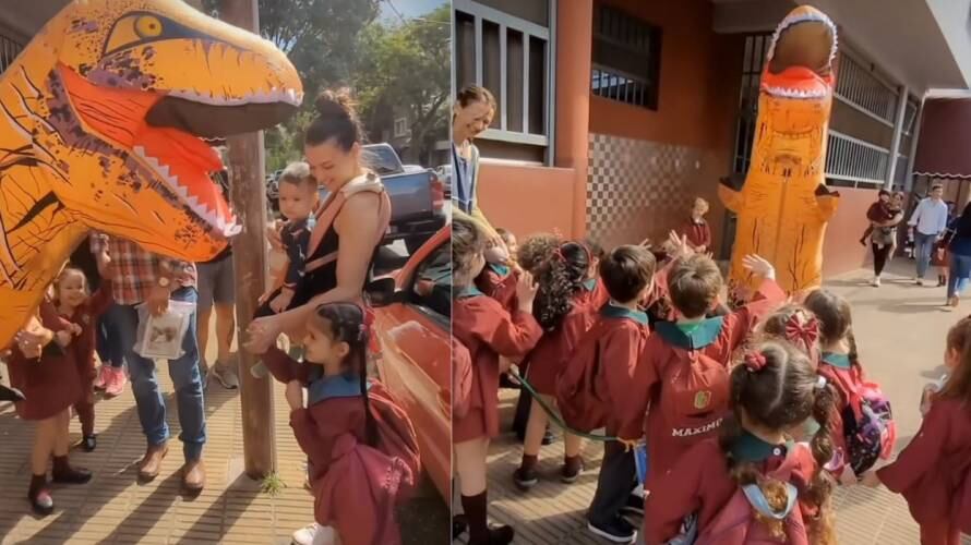 Una abuelita ha demostrado que el amor y la creatividad no tienen límites al sorprender a su nieto en la escuela después de dos meses sin verlo. La abuela decidió llegar disfrazada de dinosaurio a la escuela de su nieto para hacerle una sorpresa que nunca olvidará.