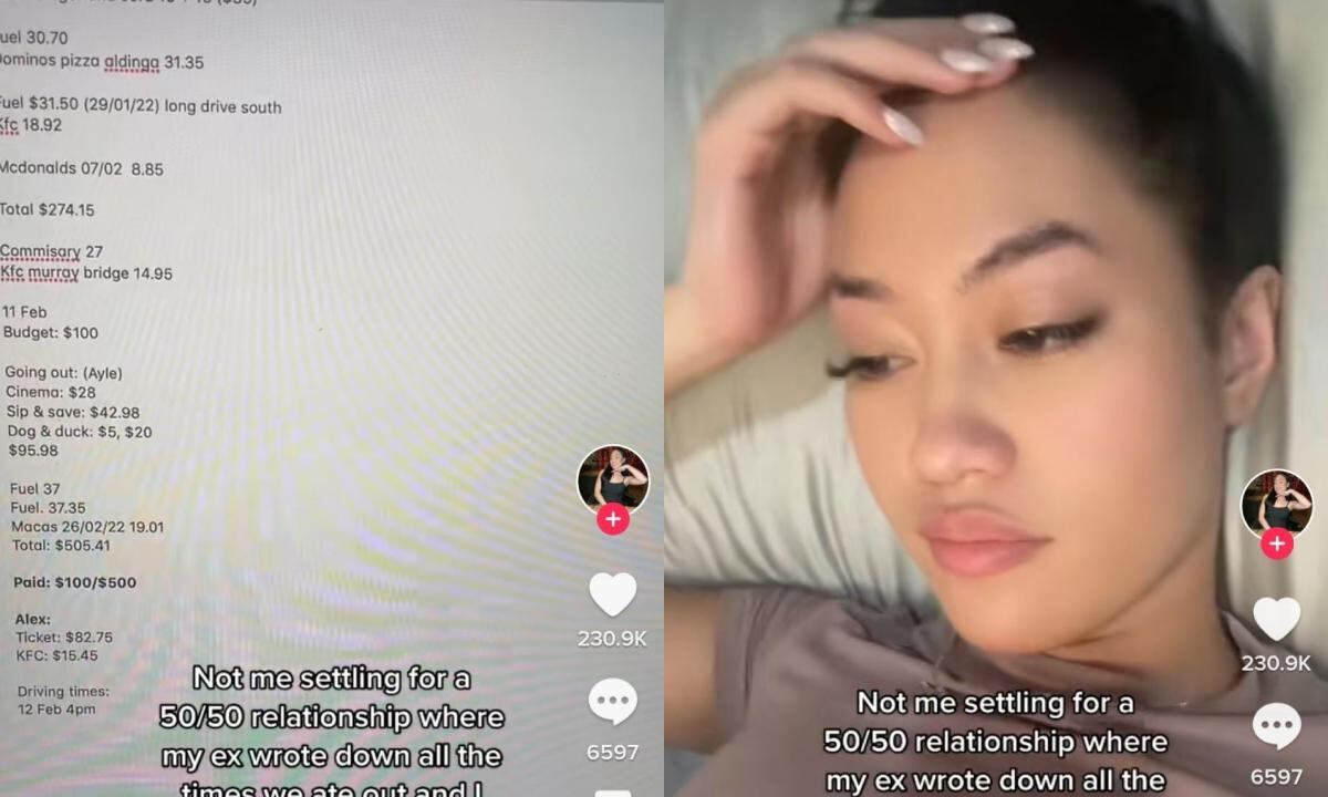 La usuaria de TikTok @tiny.aisle contó a través de la red social que tras finalizar su relación con un chico, recibió un documento donde le cobra la mitad del dinero de todo lo que hicieron juntos: cenas, cine, salidas a pasear. Un caso que se ha popularizado en la red social.