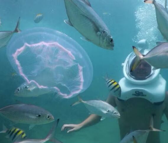 ¿Has escuchado del sistema Sea Trek? Pues te “conviertes” en una “especie de astronauta” para realizar un recorrido marino a tan solo diez pies de profundidad. Tendrás un poco más de 25 minutos para explorar, contemplar y disfrutar de un increíble espectáculo de vistosas especies marinas.