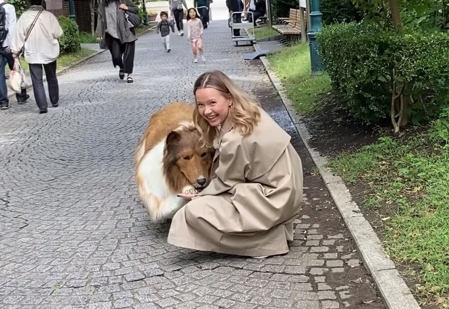 Después de algún tiempo trabajando para convertirse en un perro, por fin realizó su primer paseo.
