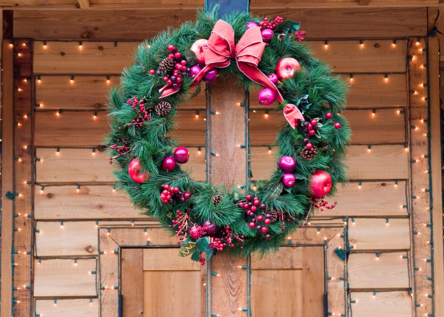 Coloca una corona navideña en la puerta principal para dar la bienvenida a tus invitados. Puedes personalizarla con elementos que reflejen tus gustos y estilo, como piñas, lazos de colores y pequeñas figurillas festiva