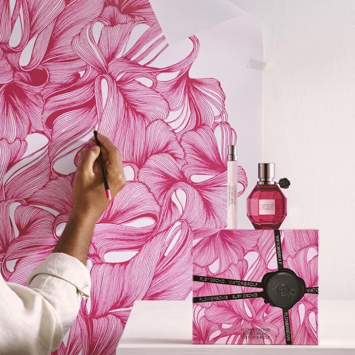 Para esta edición especial, Ángel Marrero diseñó un empaque que encapsula el espíritu de Flowerbomb, a través de su interpretación de las flores abstractas, el movimiento y la extravagancia. Su dominio de la paleta de colores y la técnica de línea fina, han dado vida a un diseño que no solo captura la esencia de la fragancia, sino que también celebra la elegancia y sofisticación inherentes a la marca.