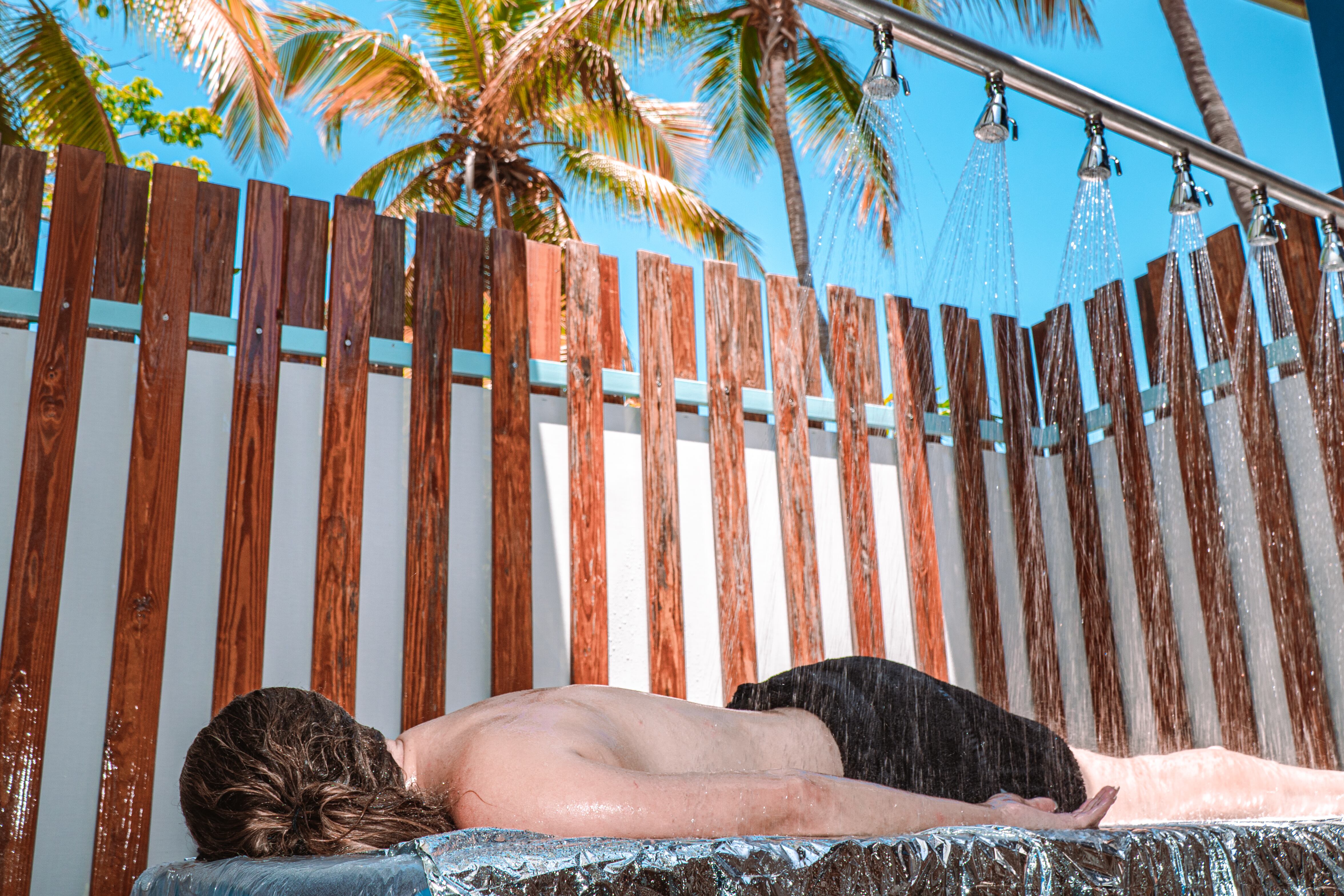 - El gazebo flotante es el lugar perfecto para un masaje en pareja o un masaje individual. En el gazebo flotante disfrutará de un masaje de cuerpo completo, y vibraciones relajantes y meditativas, mientras escucha las olas romper en la orilla.