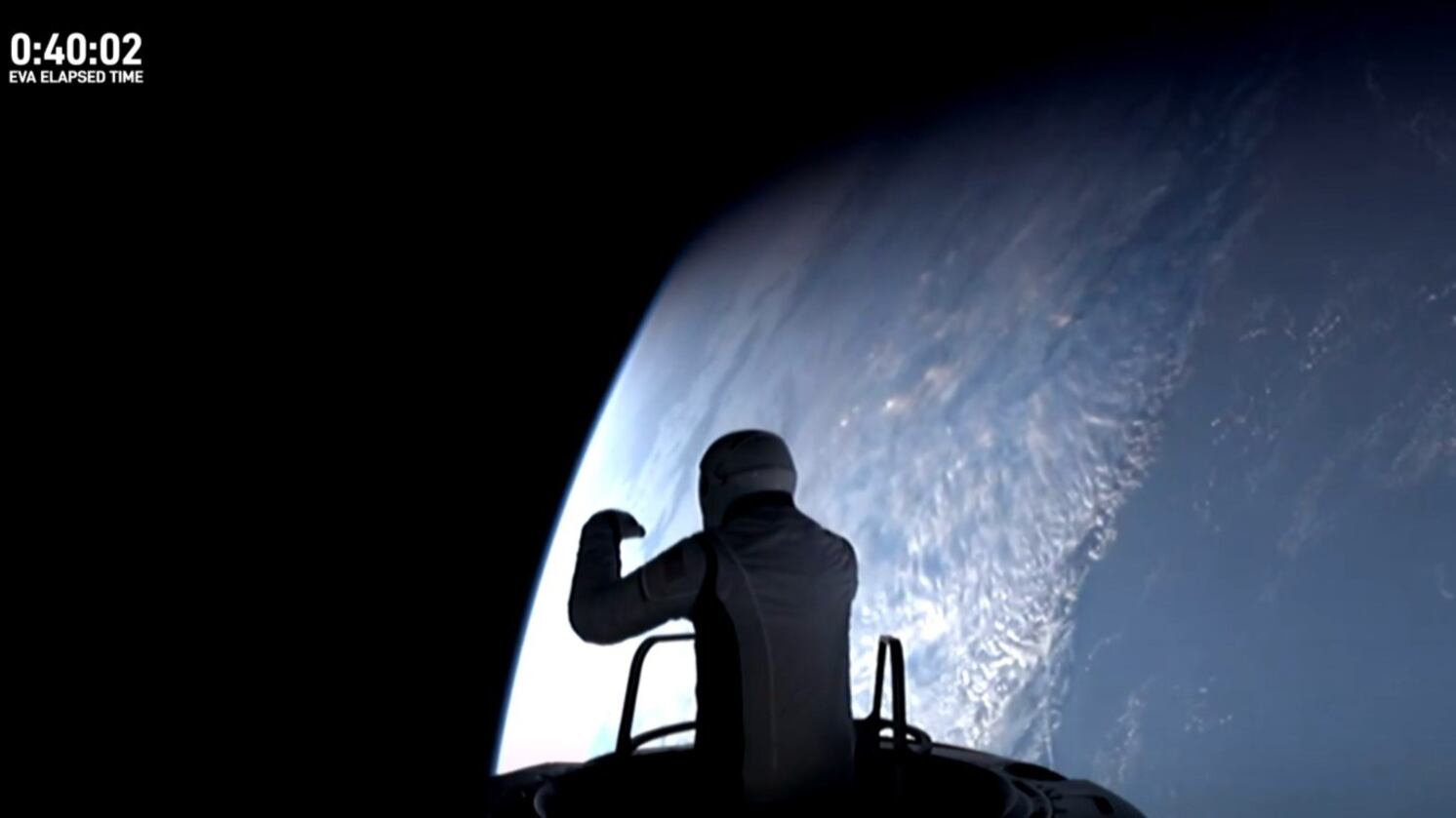 Durante la salida comercial del jueves, la cápsula de la nave Dragon apenas estuvo abierta media hora. Isaacman salió solo hasta la cintura para probar brevemente el nuevo traje espacial de SpaceX, seguido por Gillis, que salió hasta la rodilla mientras flexionaba brazos y piernas durante varios minutos. Gillis, una violinista con formación clásica, también había hecho antes una actuación en órbita.