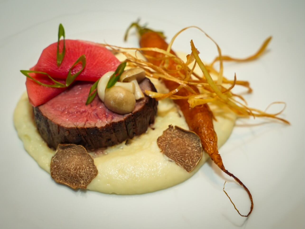 - Chef Juan Peña, Carolina, Puerto Rico: W Black Wagyu – Solomillo, zanahoria estofada en grasa de wagyu, champiñón silvestre encurtido, chirivía con trufa blanca