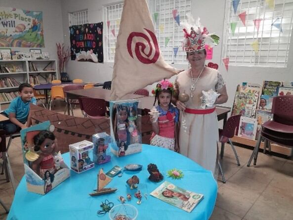Bayrón Ferreira ha personalizado diferentes figuras anteriormente para inspirar a sus estudiantes a continuar aprendiendo y combina esfuerzos con otros maestros del plantel. Para el evento la destacada maestra conto con la plena colaboración de Olga G. López González, Bibliotecaria de la EELMR.