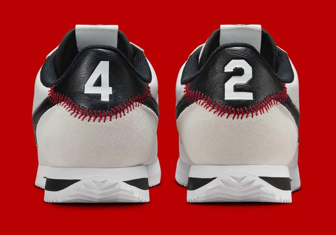 Pero la realidad es que es en los pequeños guiños donde estas Cortez realmente cobran vida: las costuras rojas tipo béisbol hacen un guiño directo al deporte que cambió la historia, y el número 42, que Robinson inmortalizó en los Dodgers de Brooklyn, aparece estampado de forma repetitiva en la lengüeta y en la plantilla.