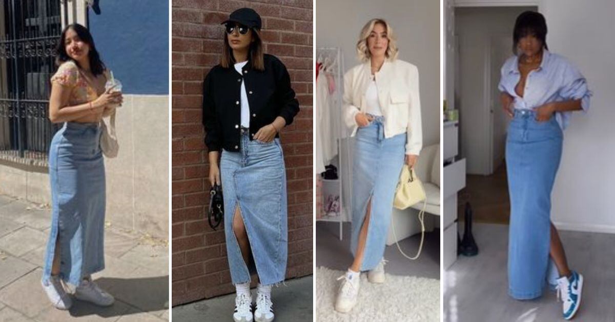 Destaca la revista especializada en moda y belleza que las faldas de mezclilla largas y de corte midi, se han apoderado de las calles.