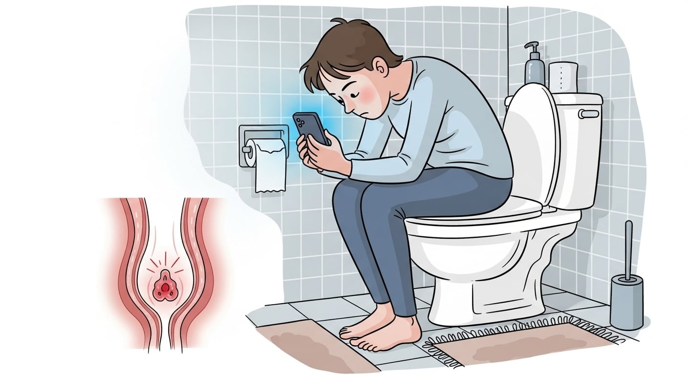 Al permanecer sentado más tiempo del necesario en el inodoro, y en una postura que no es neutra, se intensifica la presión pélvica sobre las almohadillas hemorroidales. Investigaciones comparativas han detectado que los usuarios que emplean el celular en el baño suelen exceder la duración promedio recomendada. Médicos de diversas instituciones sugieren que el tiempo ideal en el inodoro, en condiciones normales, no debería superar los tres minutos. La estimulación externa de la pantalla hace que este tiempo se multiplique, lo cual está asociado a un incremento medible en el riesgo de desarrollar complicaciones como hemorroides, fisuras anales y, en casos más graves, prolapsos rectales.