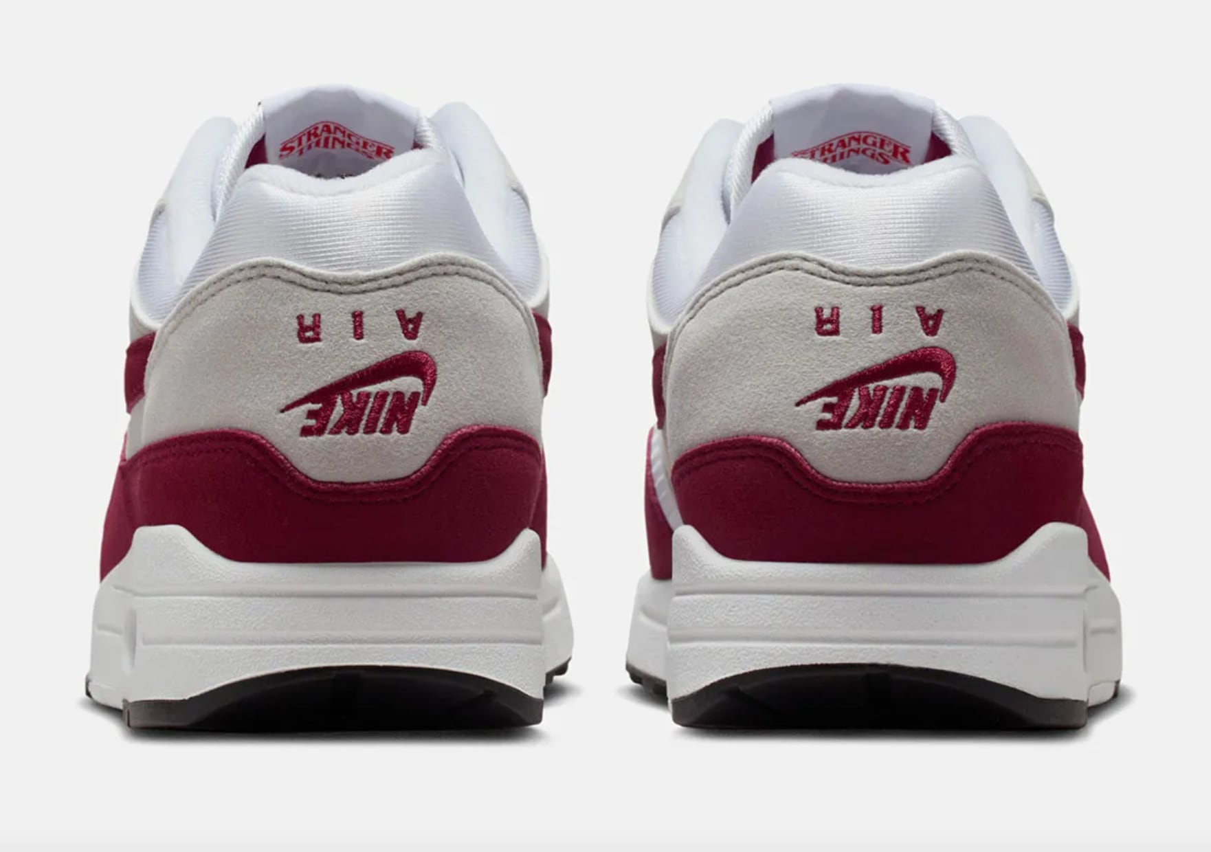 - Nike Air Max 1: Presenta una versión en color borgoña (burgundy), con etiquetas de marca invertidas y plantillas con gráficos siniestros, en clara referencia al Upside Down.