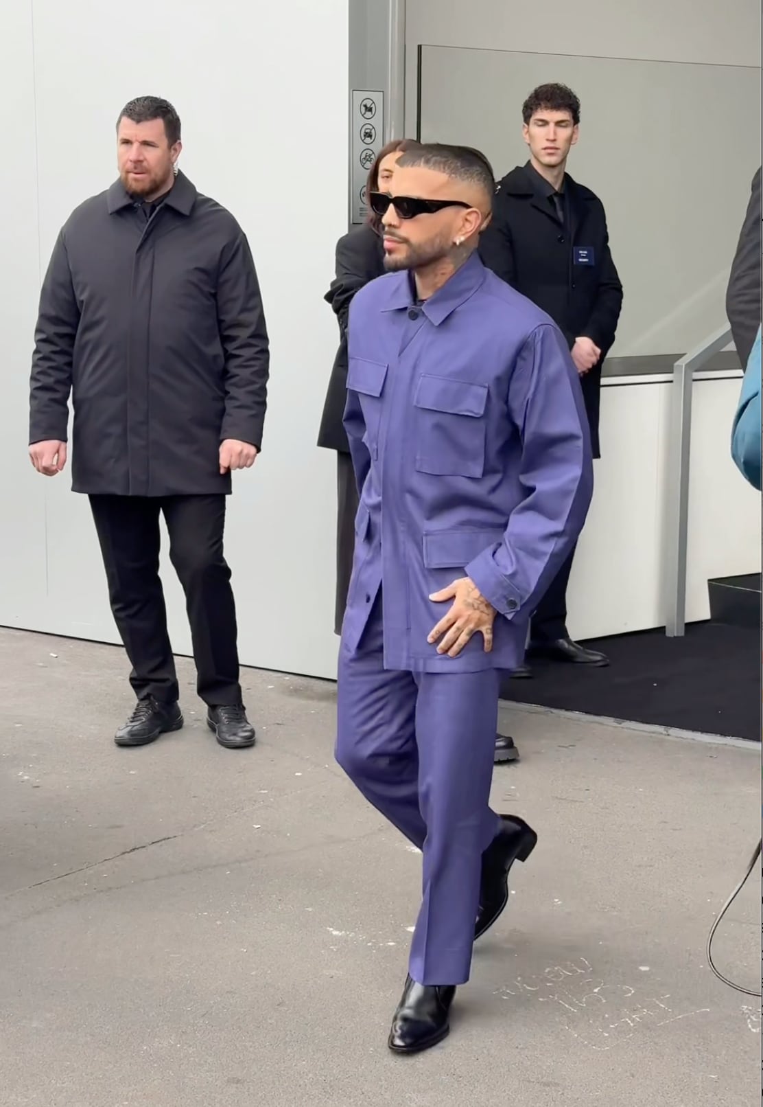 El artista puertorriqueño fue captado arribando al evento que marca el inicio del calendario internacional de pasarelas para la próxima temporada.
