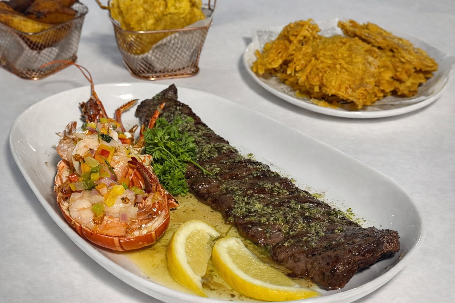 Esa generosidad también se siente en los acompañantes, reunidos bajo la sección Marejada de Sabor, con clásicos que complementan muy bien la propuesta de la casa, como tostones del país, amarillos, arroz y habichuelas, arañitas, arroz mamposteao, mofongo, bifongo o trifongo.