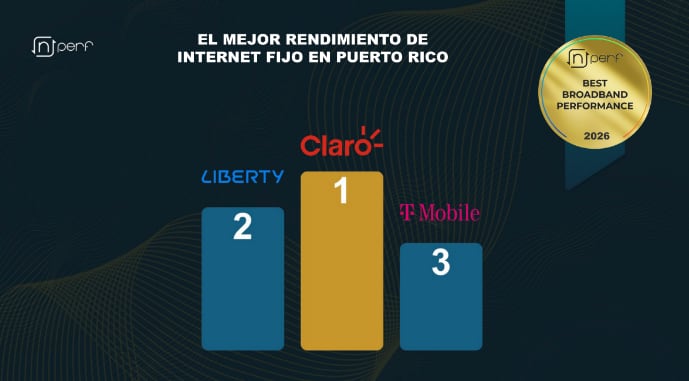 Claro Puerto Rico se posicionó como el operador con la mejor red fija en la isla en 2026, al liderar el ranking general elaborado por la empresa nPerf, con una puntuación de 91,710 nPoints, impulsado por mejoras significativas en velocidad y un desempeño sostenido en subida.