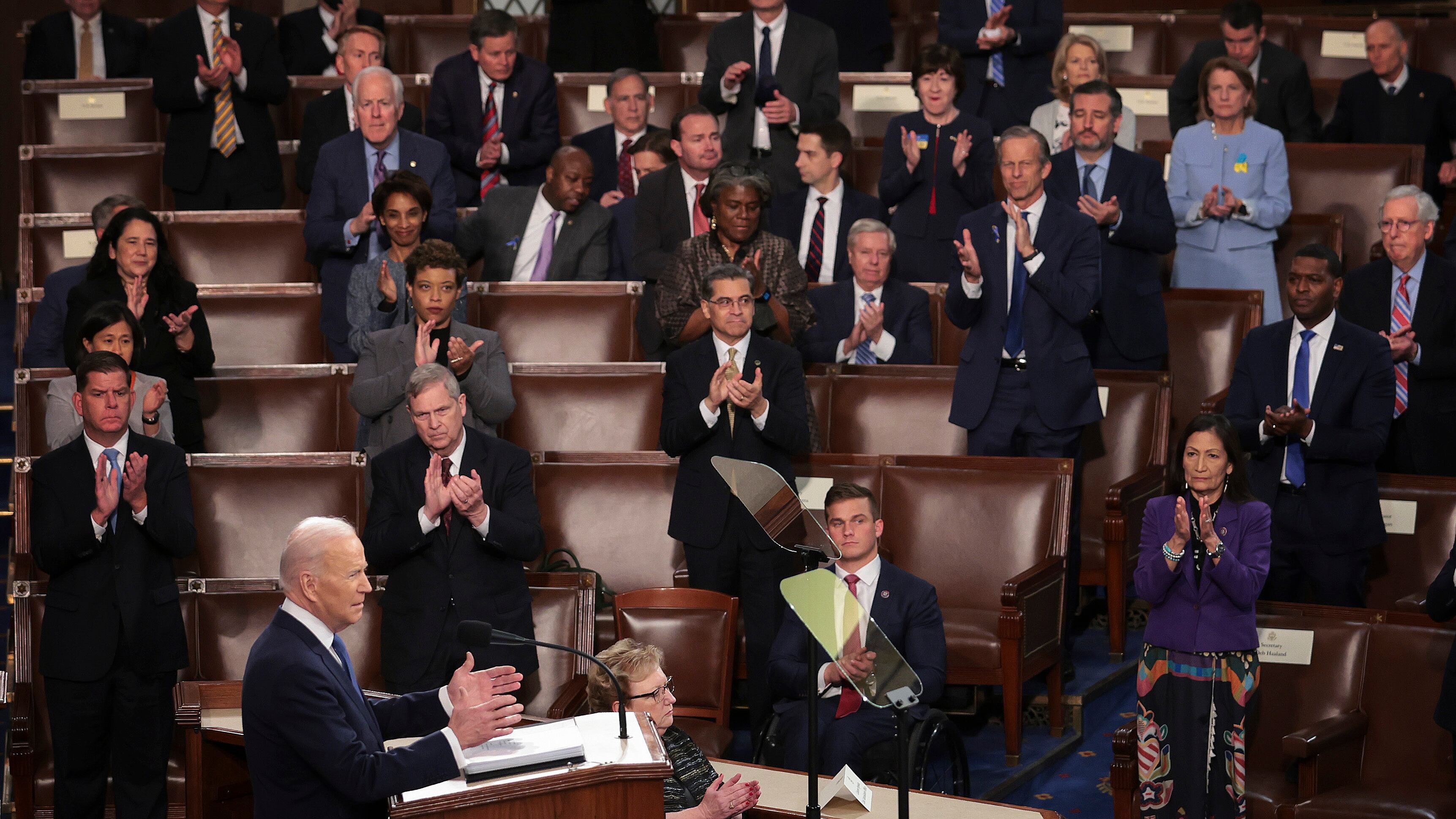 El presidente Joe Biden pronuncia su discurso Estado de la Unión ante una sesión conjunta del Congreso la noche del martes 1 de marzo de 2022, en el Capitolio, en Washington, D.C. (Win McNamee, Pool vía AP) El presidente Joe Biden pronuncia su discurso Estado de la Unión ante una sesión conjunta del Congreso la noche del martes 1 de marzo de 2022, en el Capitolio, en Washington, D.C. (Win McNamee, Pool vía AP) (Win McNamee/AP)