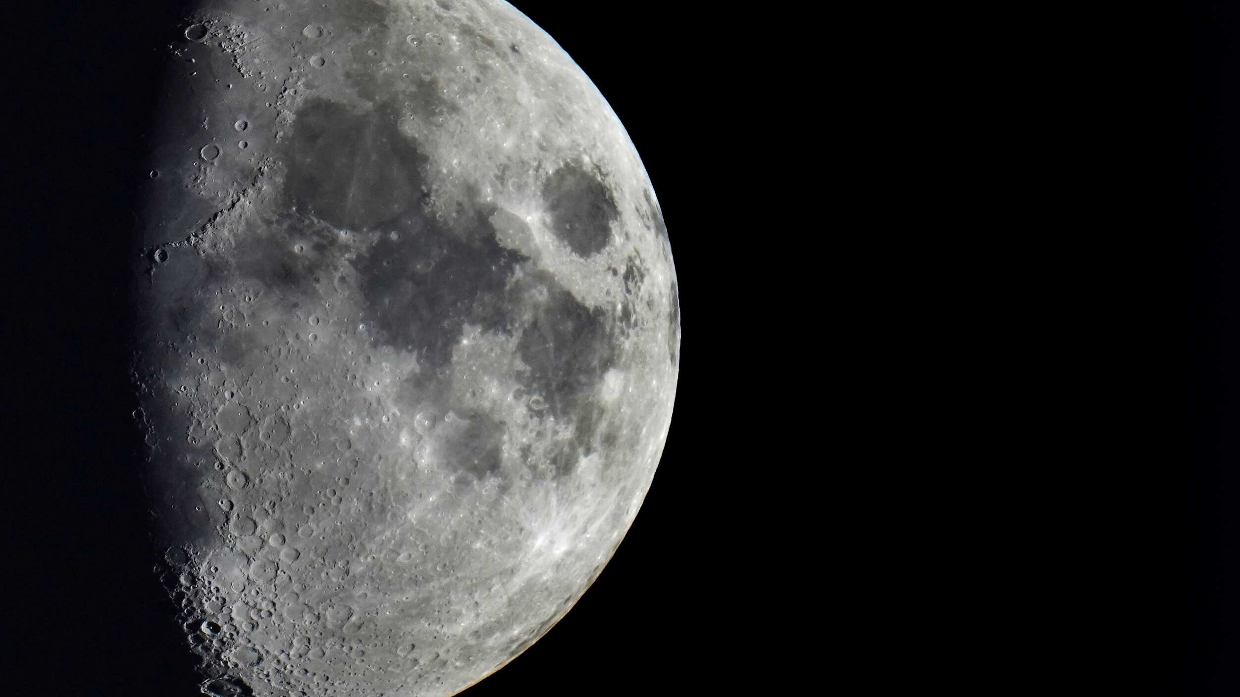 La Luna ya tiene un sinfín de cráteres, que llegan a los 2.500 kilómetros (1.600 millas) de diámetro. La Luna, que tiene poca o ninguna atmósfera, está indefensa ante el aluvión constante meteoros y asteroides y en ocasiones naves espaciales, incluidas algunas estrelladas de forma deliberada con fines científicos. Sin clima, no hay erosión, de modo que los cráteres de impacto son permanentes.