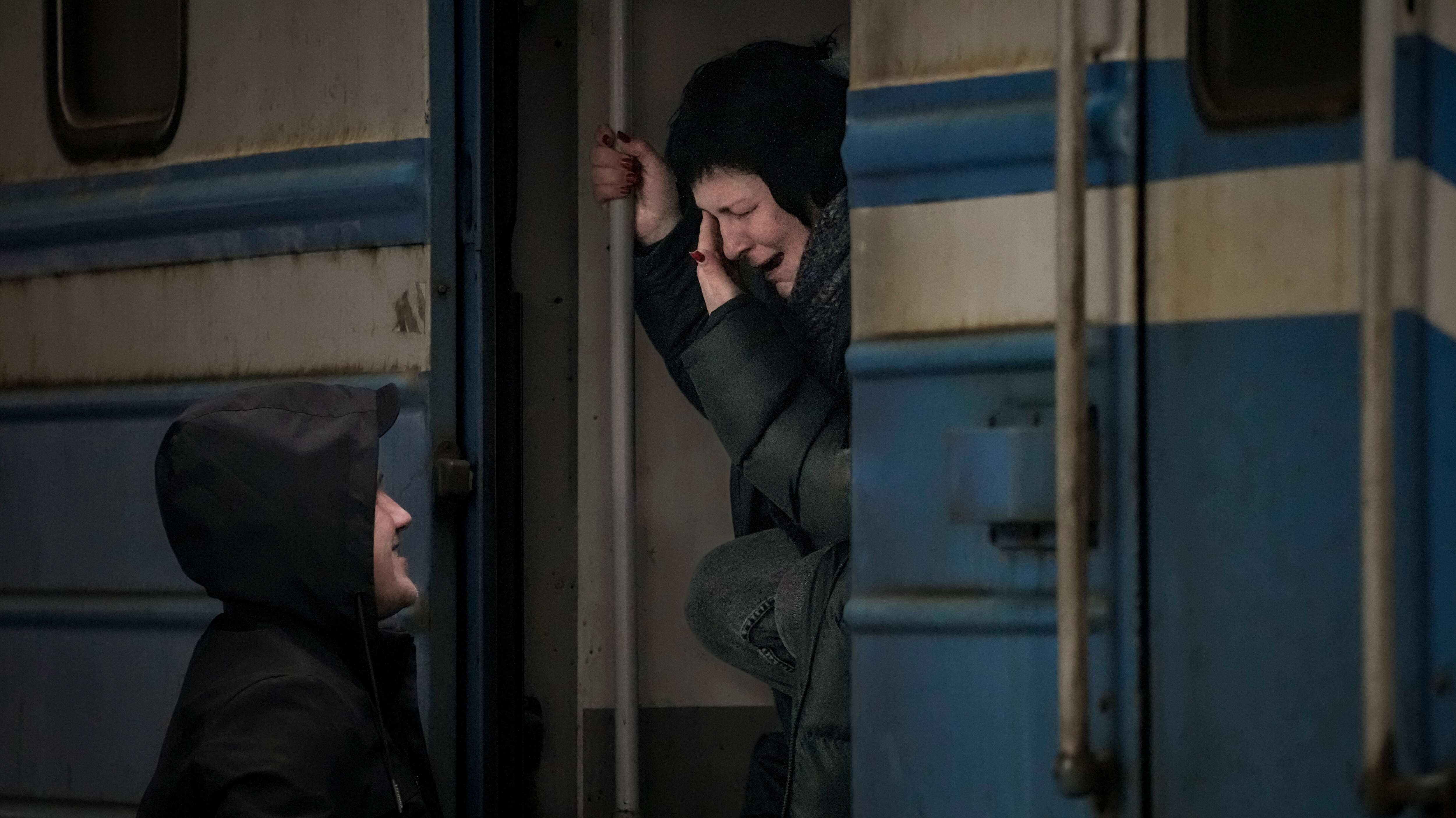 Una de ellas era Anastasia Erashova, que lloraba y temblaba con un niño dormido en sus brazos. Su otro hijo y el hijo de su hermano habían muerto recientemente durante un ataque de artillería. El cuero cabelludo de Erashova estaba salpicado de sangre.