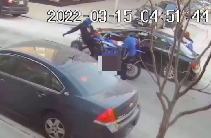 Un grupo que pertenece a una ganga de motocilistas asaltaron a una familia en una calle de Harlem en Nueva York y el momento fue capturado por una cámara de seguridad.
