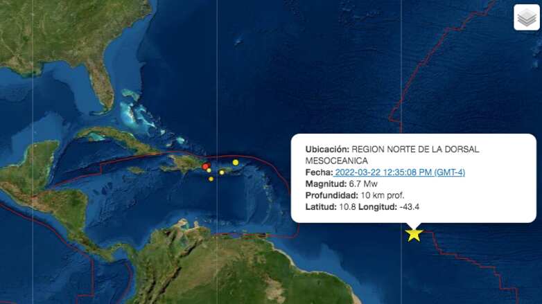 Un terremoto de magnitud 6.7 grados se registró a eso de las 12:35pm en el Océano Atlántico, según reportó el Servicio Nacional de Meteorología (NWS, por sus siglas en inglés) en San Juan.