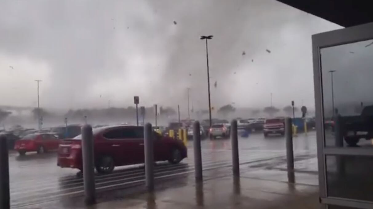 Unas personas fueron sorprendidas ayer, lunes, por un peligroso tornado mientras se dirigían a visitar una mega tienda en el estado de Texas.