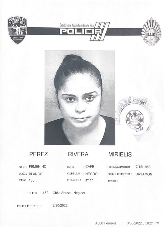 La juez Milagros Muñiz Mas, del Tribunal de Bayamón, determinó hoy causa para arresto por violación a la Ley 246 para la Seguridad, Bienestar y Protección de Menores, contra Merielis Pérez Rivera, de 35 años, residente en Bayamón, por hechos ocurridos el 21 de marzo de 2022.