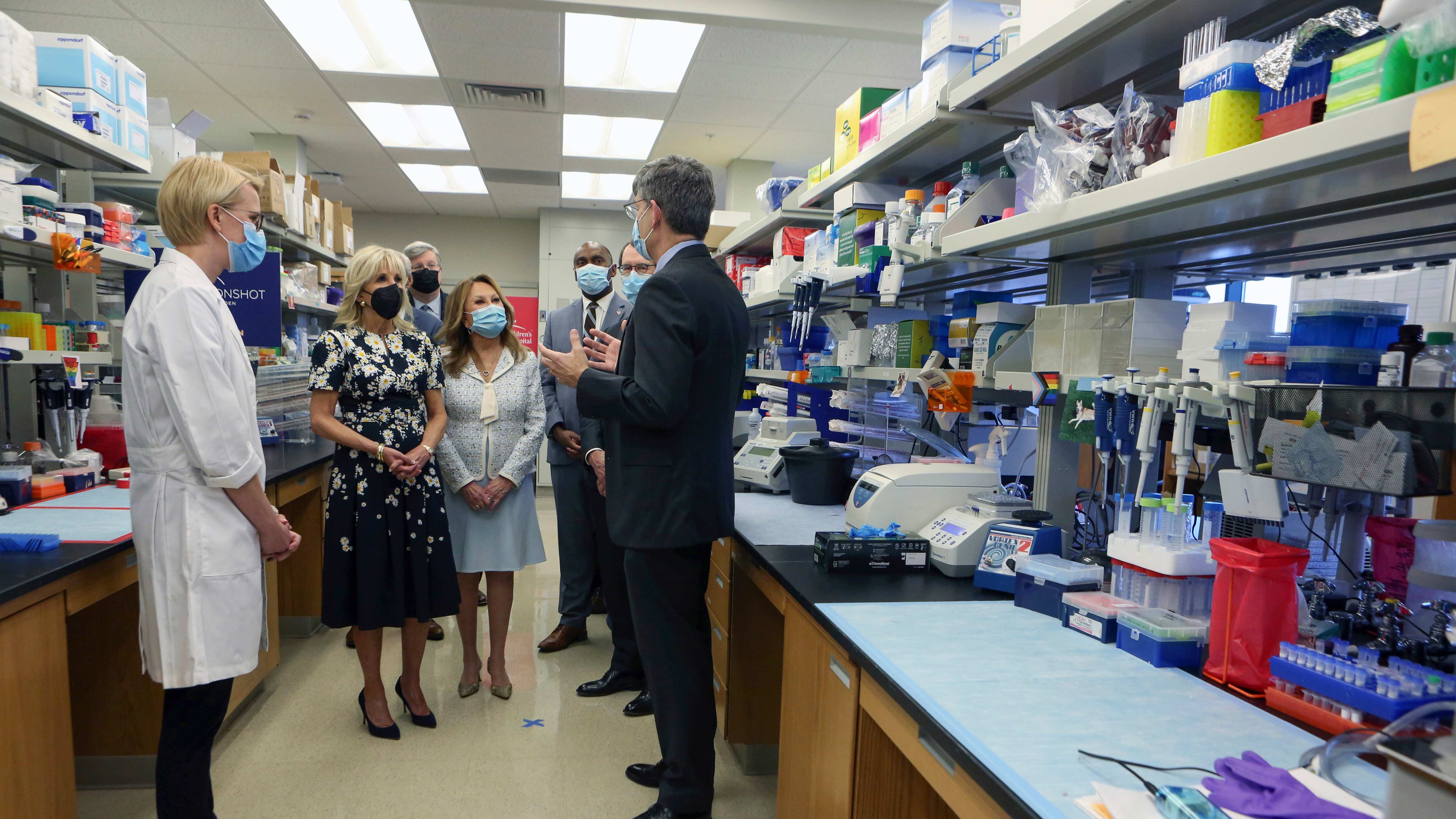 La primera dama estadounidense, Jill Biden, visitó al primer grupo en el hospital el viernes.